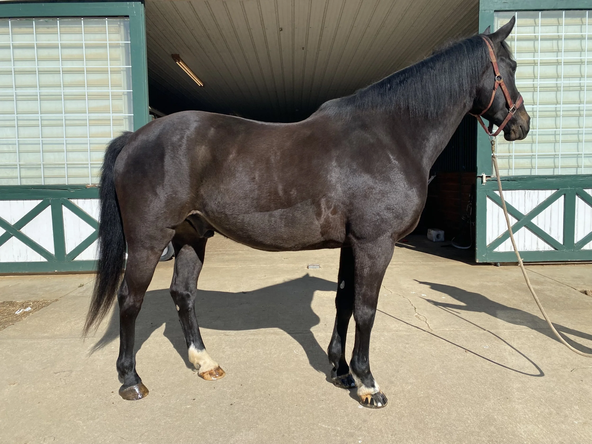 By catching this infection early, we were able to appropriately treat and prevent further complications. Once the incision had fully healed, Ace was able to progress in his rehabilitation. He began hand walking, pole walking and core exercises to strengthen his abdominal muscles. He eventually was ready for small paddock turnout with sedation. Ace has slowly regained strength and was able to return to under saddle work without any lasting complications from his surgery!